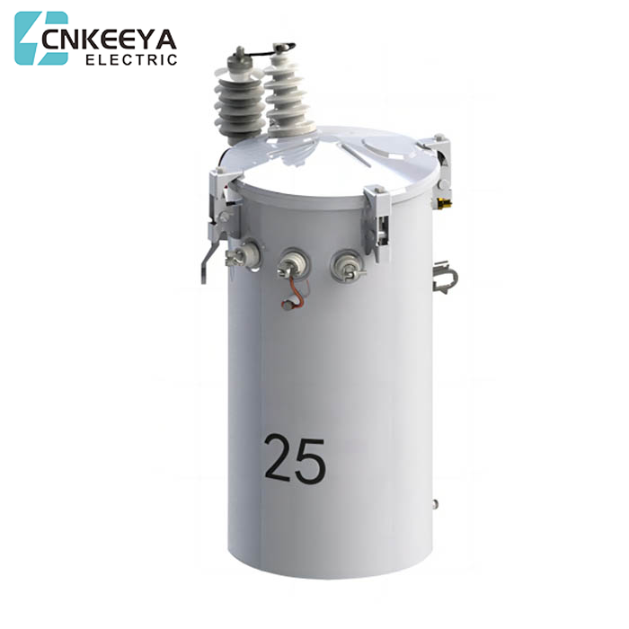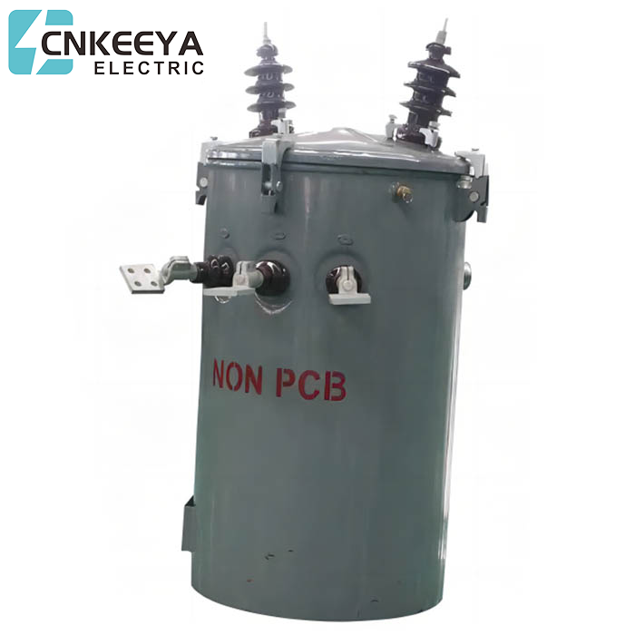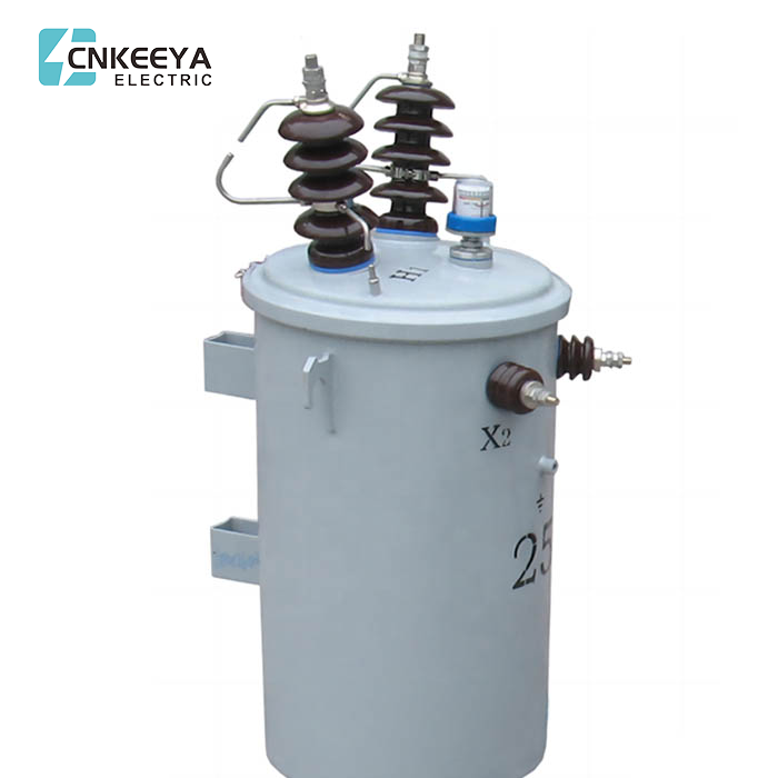 O transformador de distribuição montado em pólo monofásico é um tipo de equipamento de transformador instalado no poste da utilidade. É usado para converter energia elétrica de alta tensão em energia elétrica de baixa tensão e depois fornecê-la aos usuários. É normalmente usado em sistemas de distribuição de eletricidade urbana ou rural para transportar eletricidade de usinas de energia para casas, edifícios comerciais ou instalações industriais. O transformador de distribuição montado em fase de solteiro é um dispositivo de transformador que é fácil de instalar, manter e altamente confiável e é amplamente utilizado em sistemas de distribuição de energia urbana e rural.