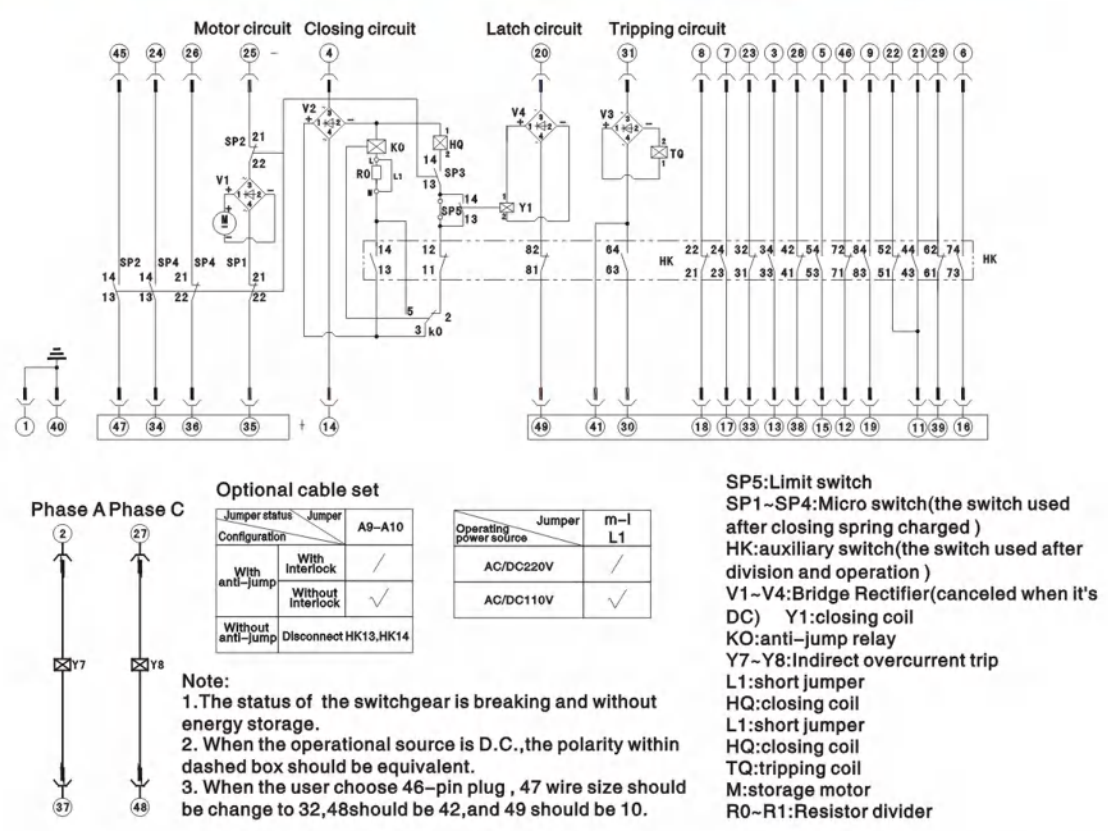 Disjuntor a vácuo interno VS1/R-12 com mecanismo de operação lateral com mecanismo de operação lateral usado por mola para armazenar energia. O mecanismo de operação pode ser operado de duas maneiras: por operação manual e eletromotriz. As características estão de acordo com o disjuntor CA de alta tensão GB 1984-2003, disjuntor CA de alta tensão JB 3855-1996 3,6-4,5KV interno e o padrão IEC 62271-100:2001 Disjuntor CA de alta tensão.